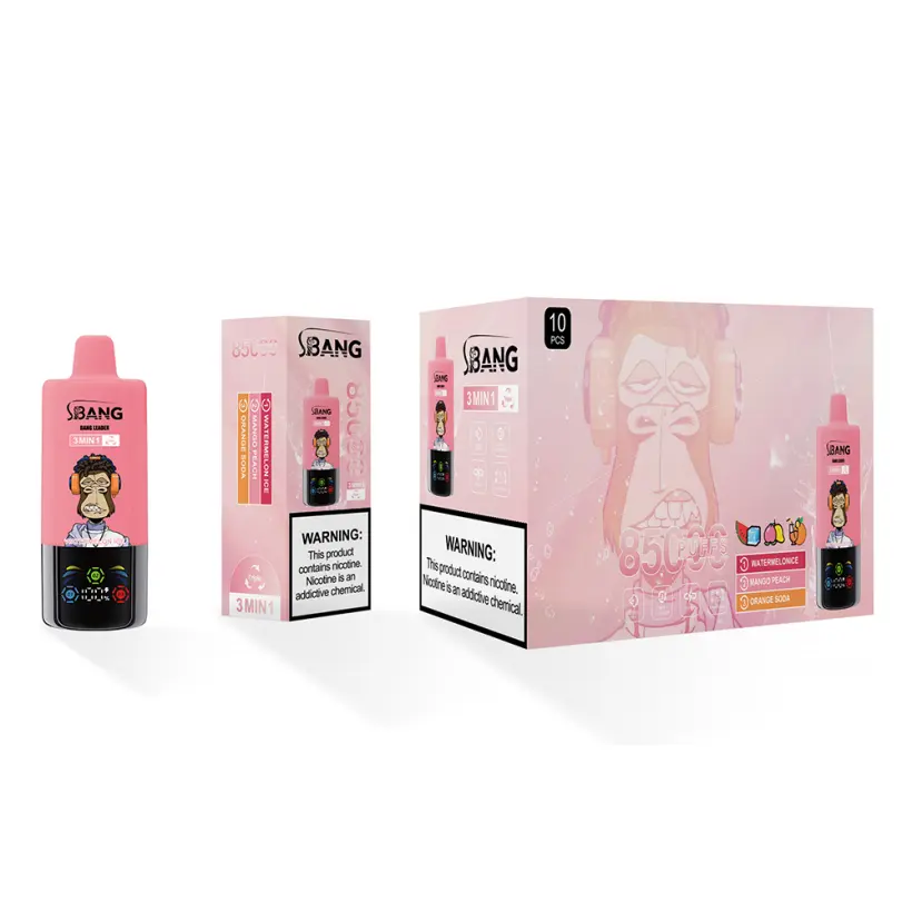 Bang Leader 85k Caladas 85000, el mejor vape desechable 3 en 1, impulsado por una batería de 850mAh y una coil mesh de 1.0Ω. Cuenta con carga Tipo-C y una selección de 15 sabores premium. Embalaje de venta al por mayor: 10 unidades/caja, 200 unidades/cartón. Experimenta un rendimiento superior y un gran valor con envío gratuito incluido.
